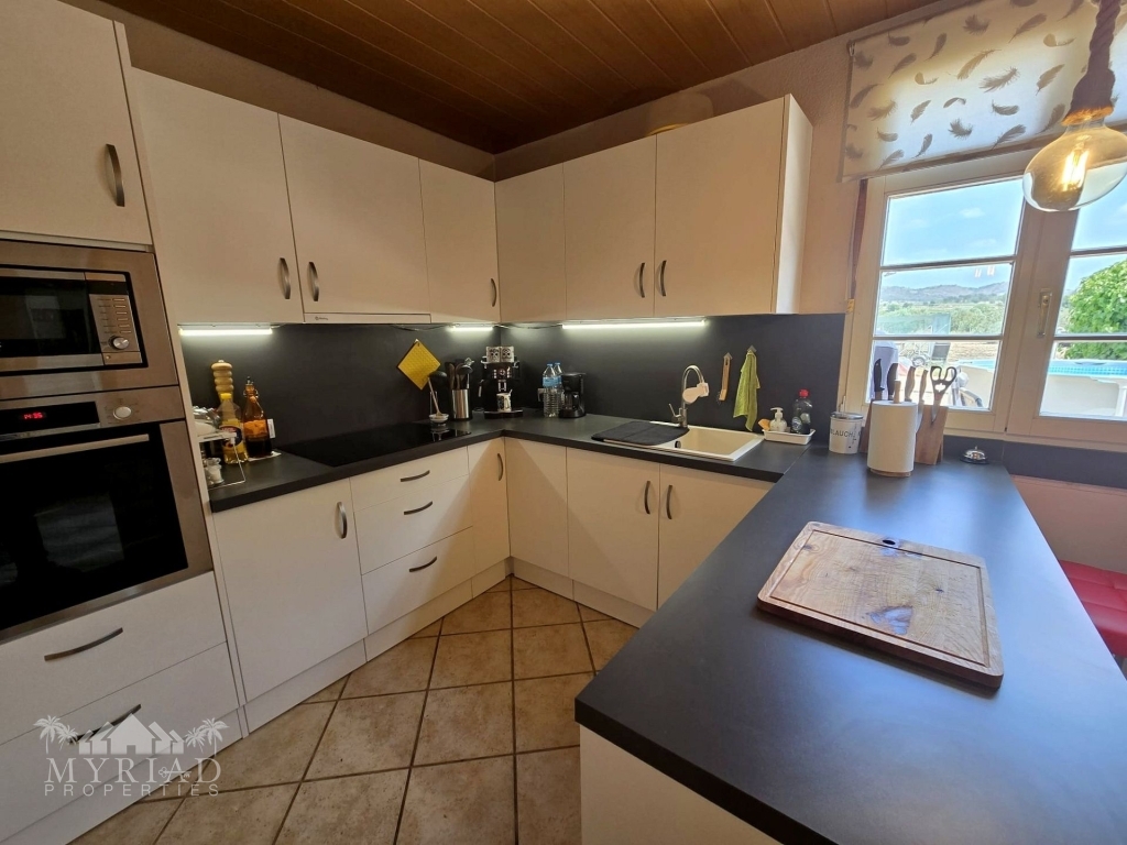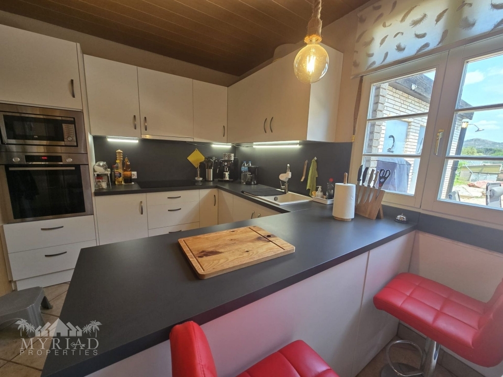 The kitchen, just 3 years old, is a true focal point of the home. Equipped with an induction stove, this space is not only stylish but also highly functional for those who love to cook. You’ll be able to welcome all your guests with delicious meals prepared in this contemporary and efficient kitchen.