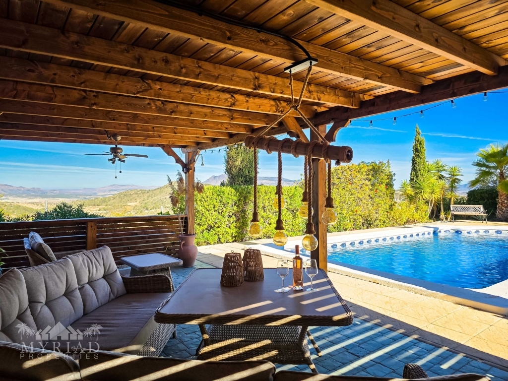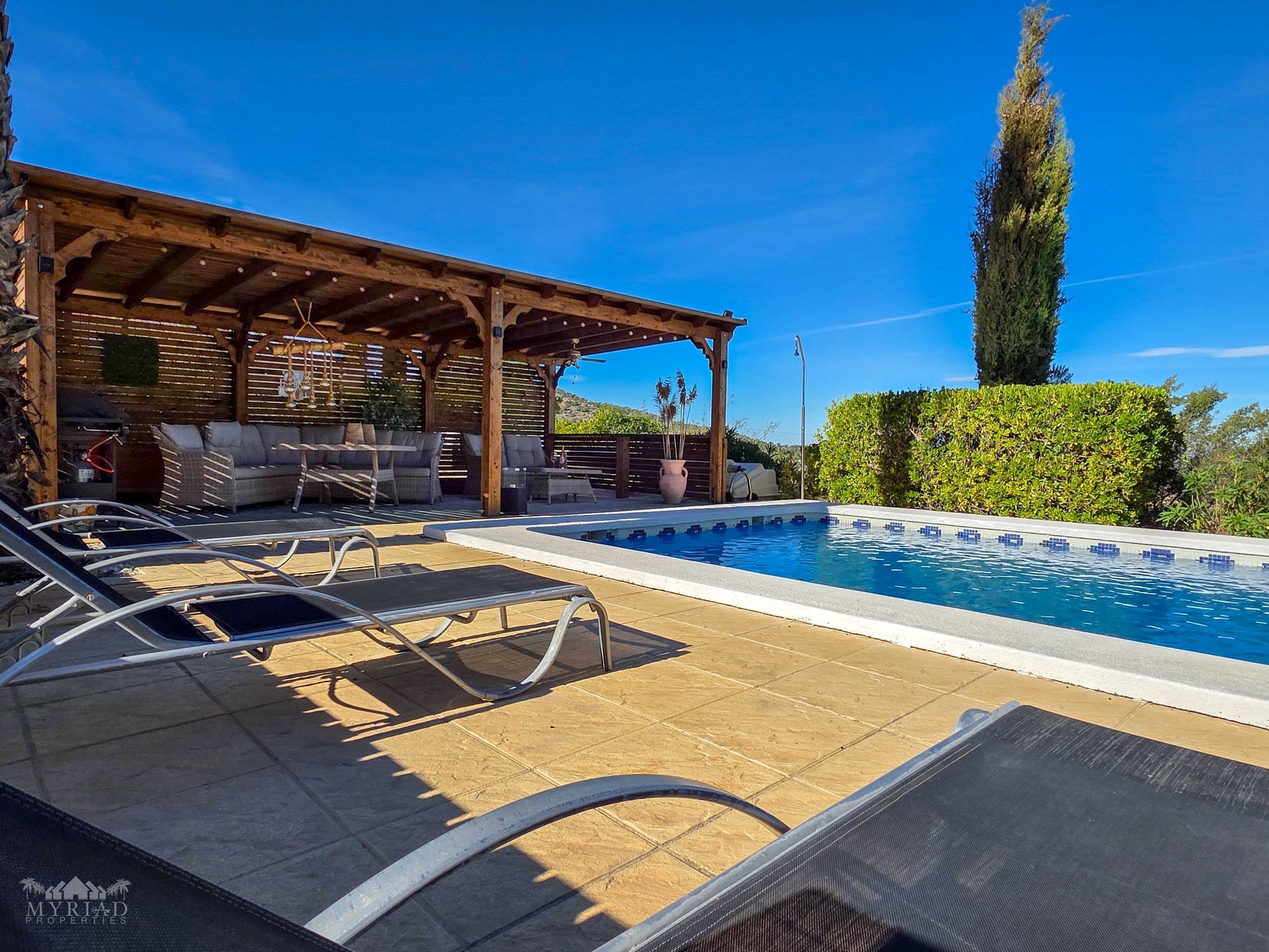 What a dream. A ready-to-move-in villa with perhaps the best view over the Zarza Valley. Watching the sun set from the terrace or by the pool with a glass of local wine, surrounded by mountains and full privacy.