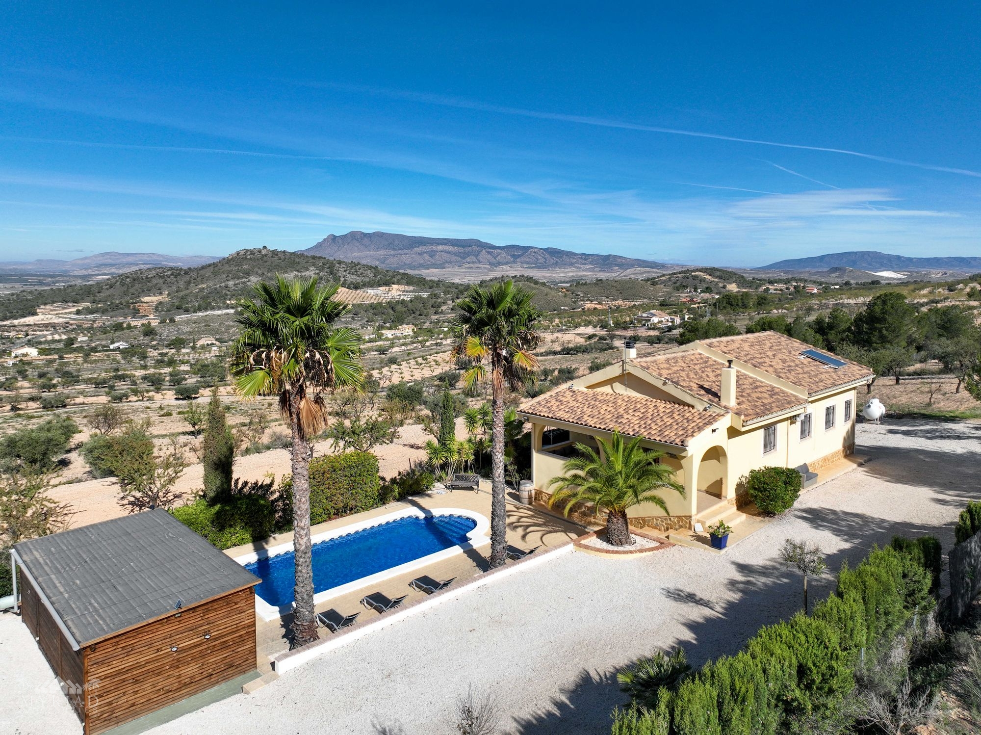 Situated in the beautiful green nature of the Zarza Valley, the villa lies 20 minutes from the towns of Pinoso and Abanilla. The area is rural, surrounded by pine forests, vineyards, almond and olive groves. The villa enjoys a peaceful setting while still having other villas nearby.