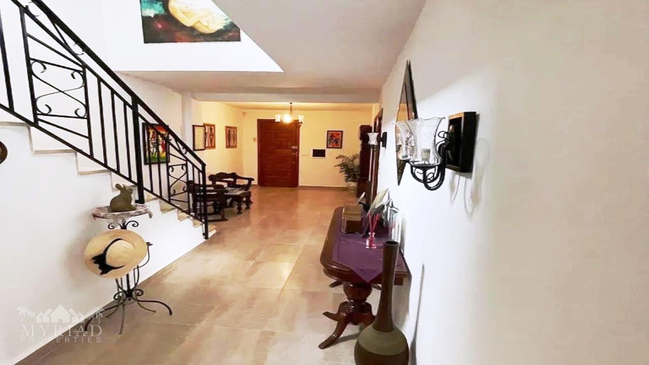 Upon entering, you are greeted by an impressive entrance hall with a marble staircase leading to the upper floor. To the left, there is a fully fitted independent kitchen, and a separate dining room which could easily be converted into a fifth bedroom if desired.