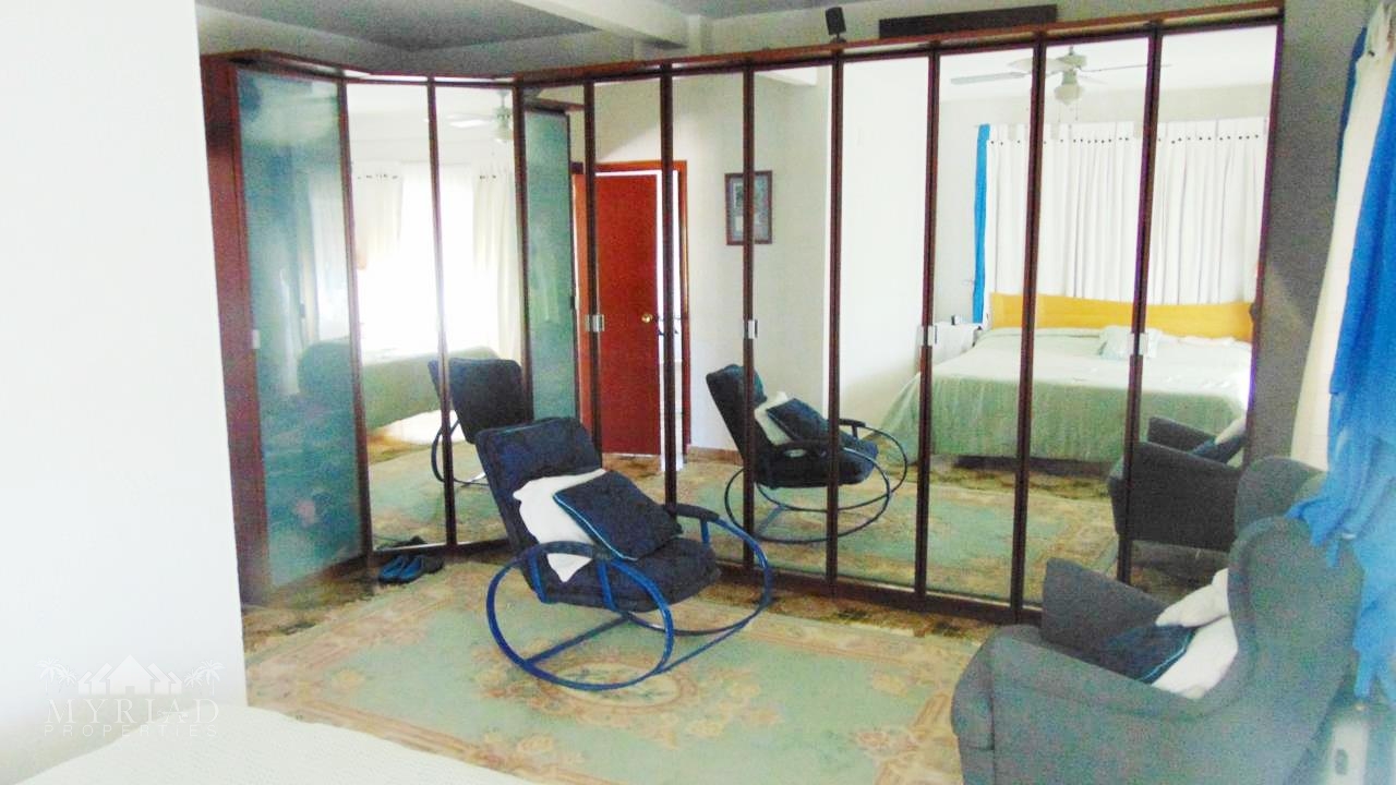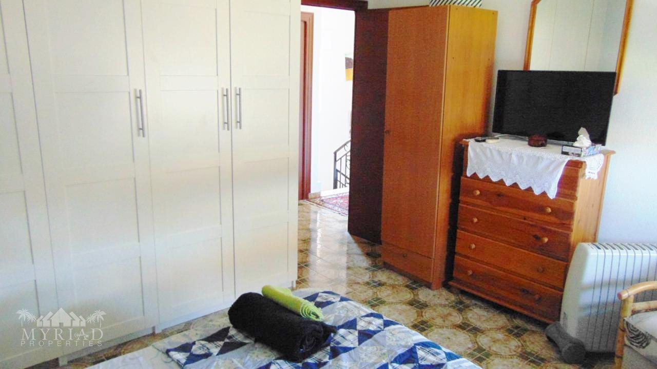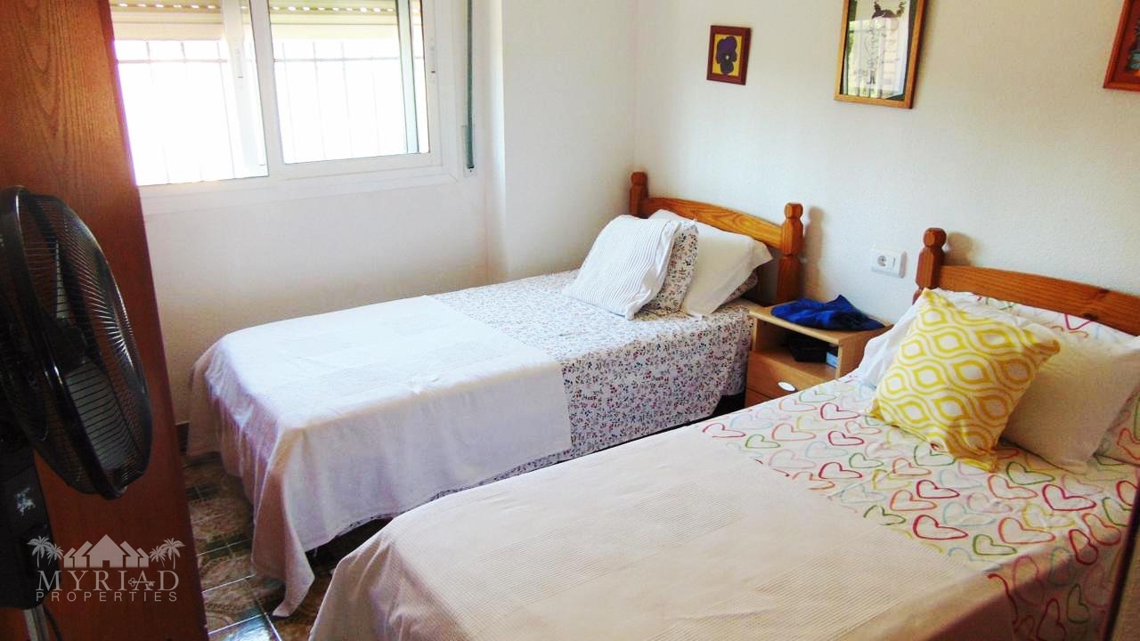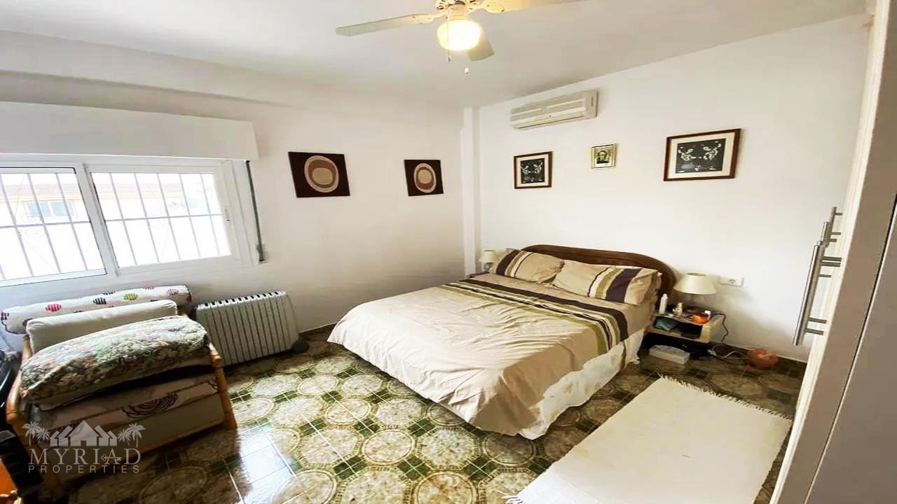 There is also a twin bedroom with fitted wardrobes and ceiling fan, plus another double bedroom with air conditioning and fitted wardrobes. A large family bathroom and an additional smaller bathroom complete this level — the latter could easily be converted into another en-suite if desired.